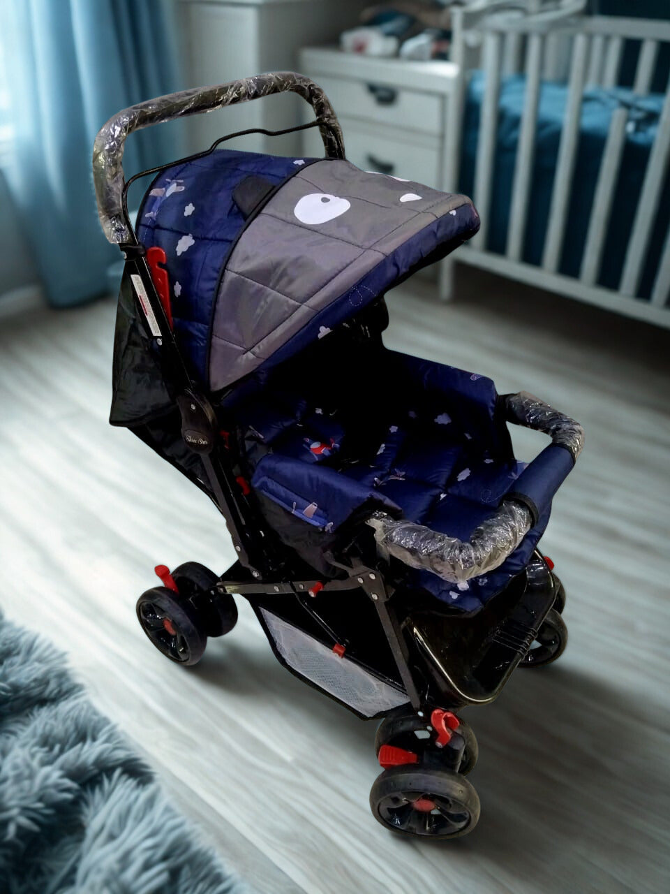 This baby pram is designed for comfort, safety, and convenience. It has a strong yet lightweight frame and a soft, adjustable seat that lets your baby sit or sleep easily. A 5-point safety belt and strong brakes ensure full protection. The pram includes a large sun canopy, shock-absorbing wheels, and a spacious storage basket for baby items. It folds easily for travel and storage. The adjustable handlebar makes it comfortable for parents of all heights. Suitable for newborns up to 3 years (up to 20 kg).